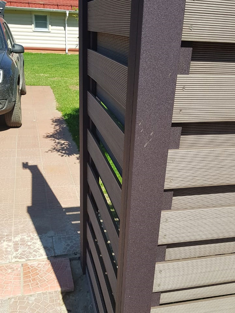 Вентилируемый секционный забор, с алюминиевой опорой. Простой и легкий в монтаже и прочный и надежный на долгие годы.